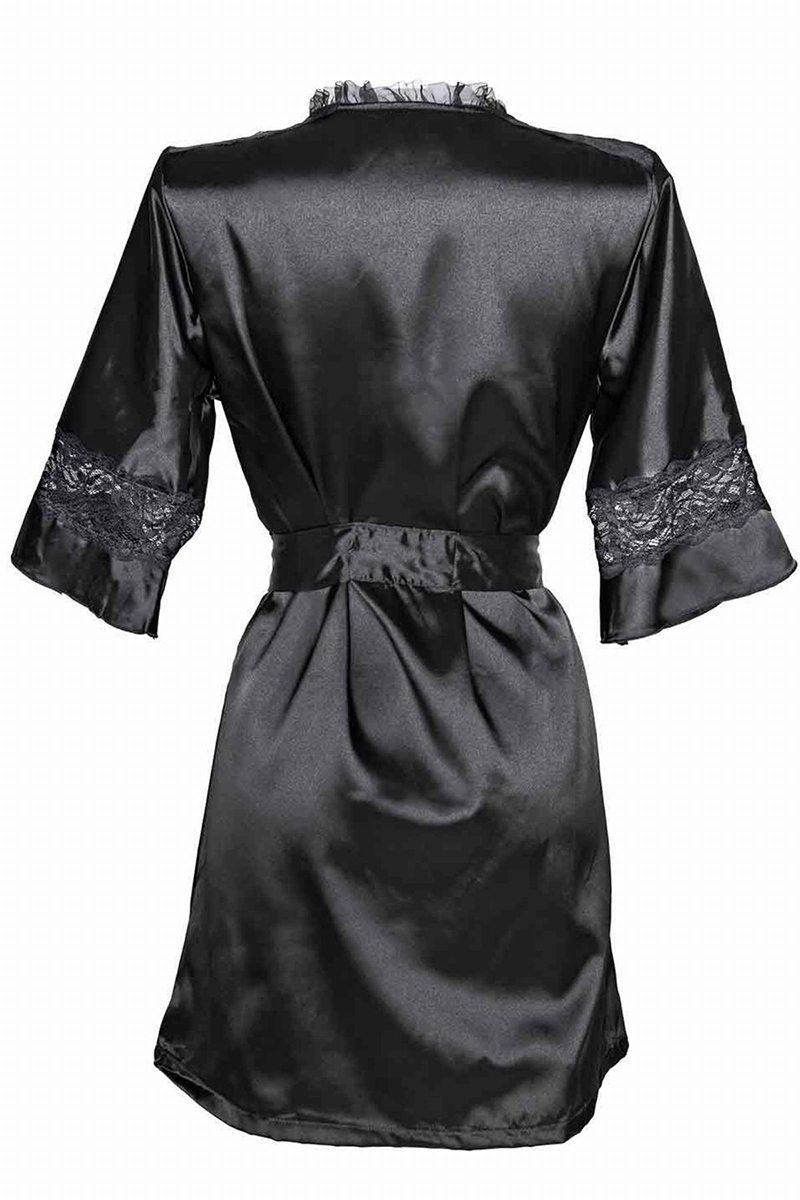 Ce magnifique déshabillé court en satin noir est doux et soyeux, sexy tout en étant confortable à porter.